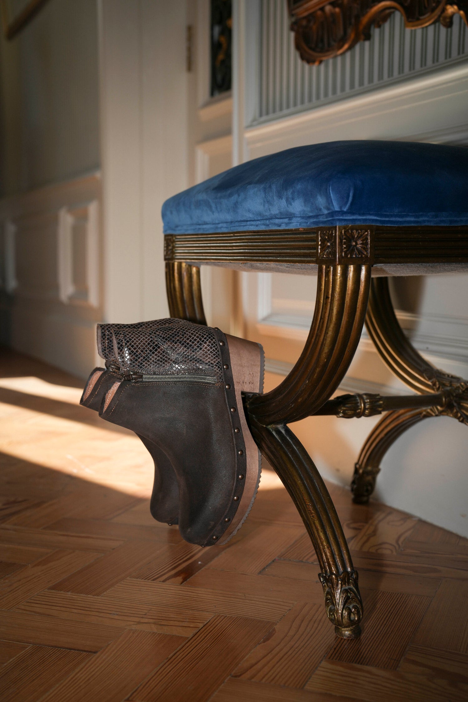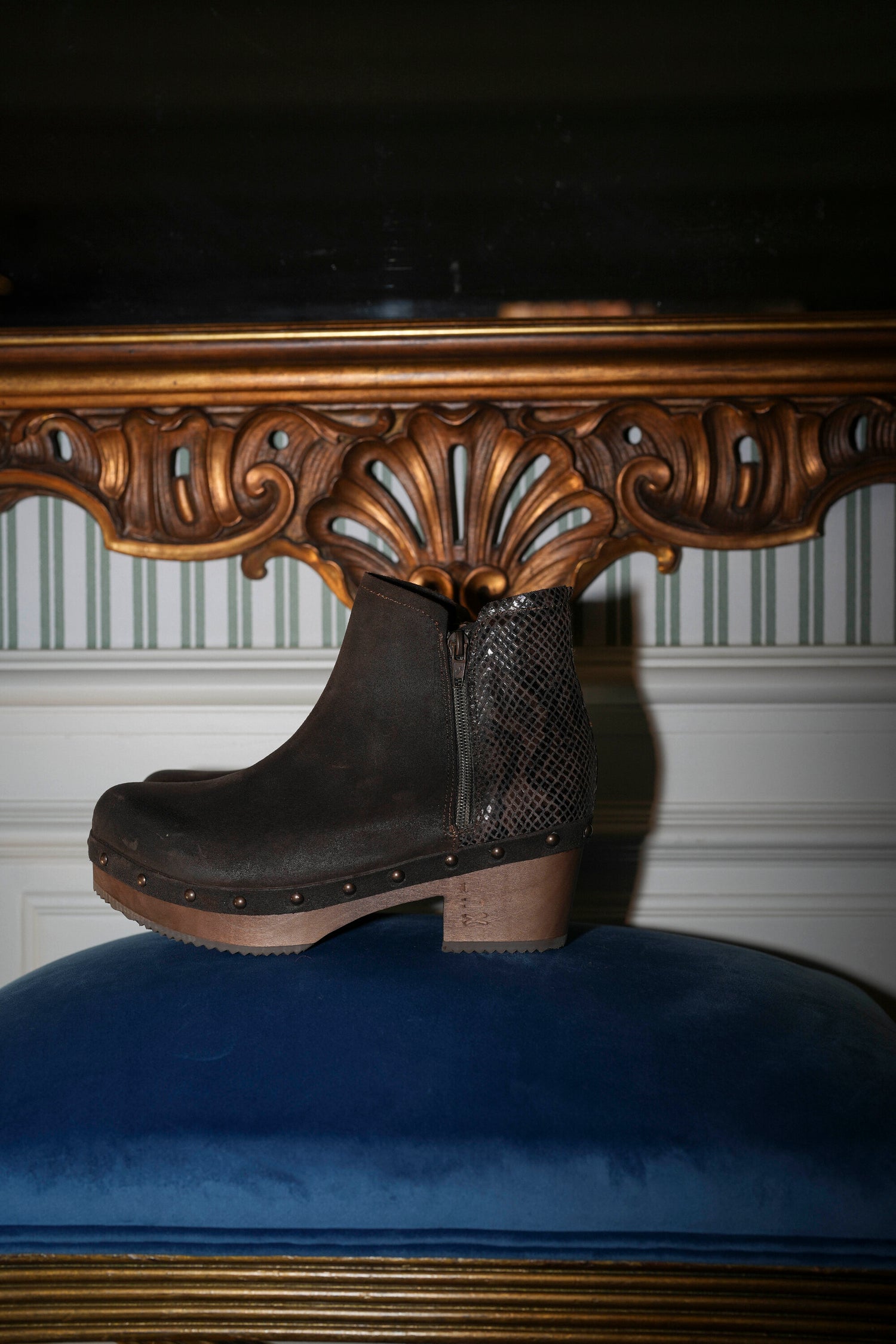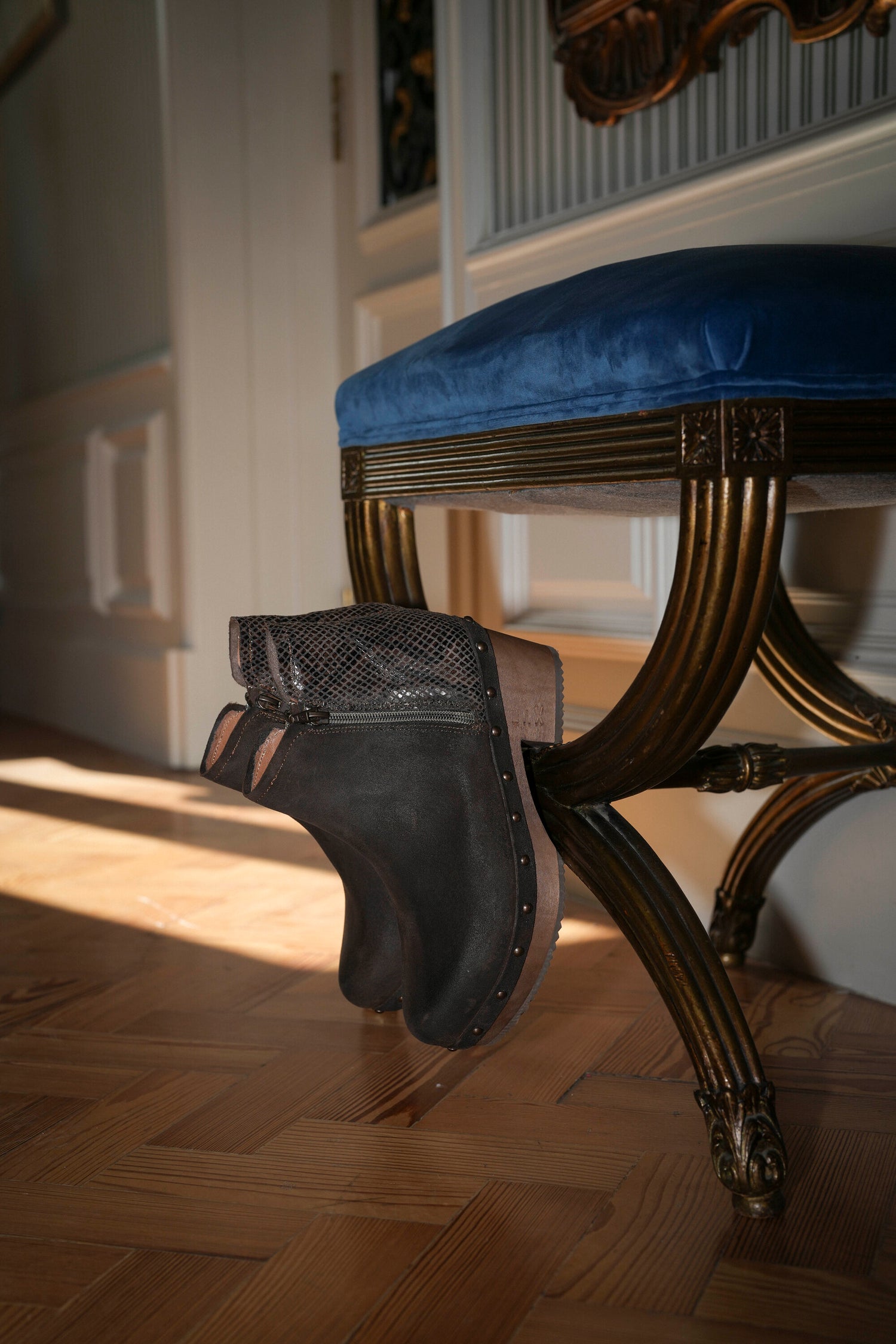 É um produto manufacturado pelo que variações que possam existir na cor da pele, nos tacões de madeira são inerentes ao processo manual o que torna esta peça única.