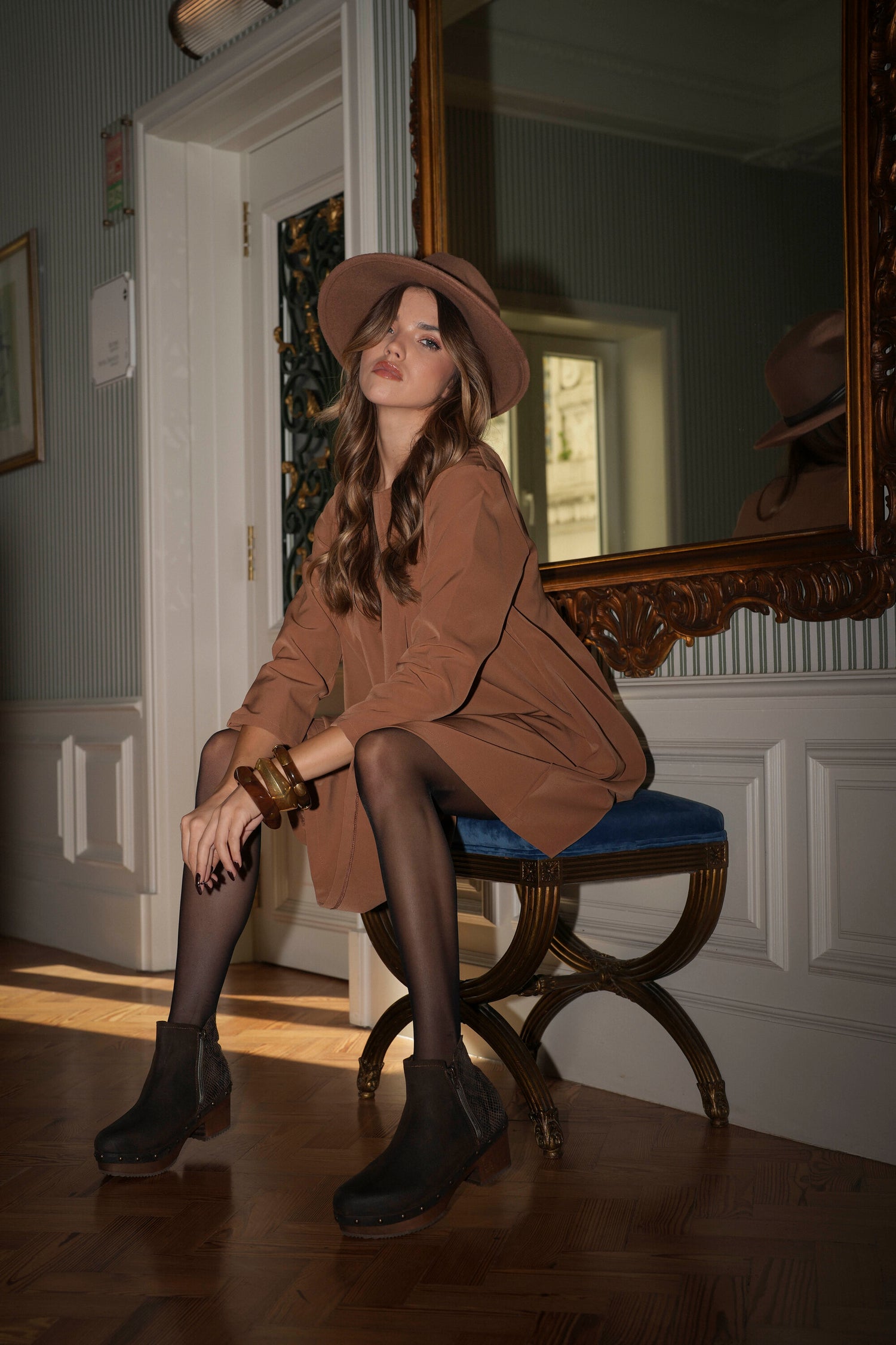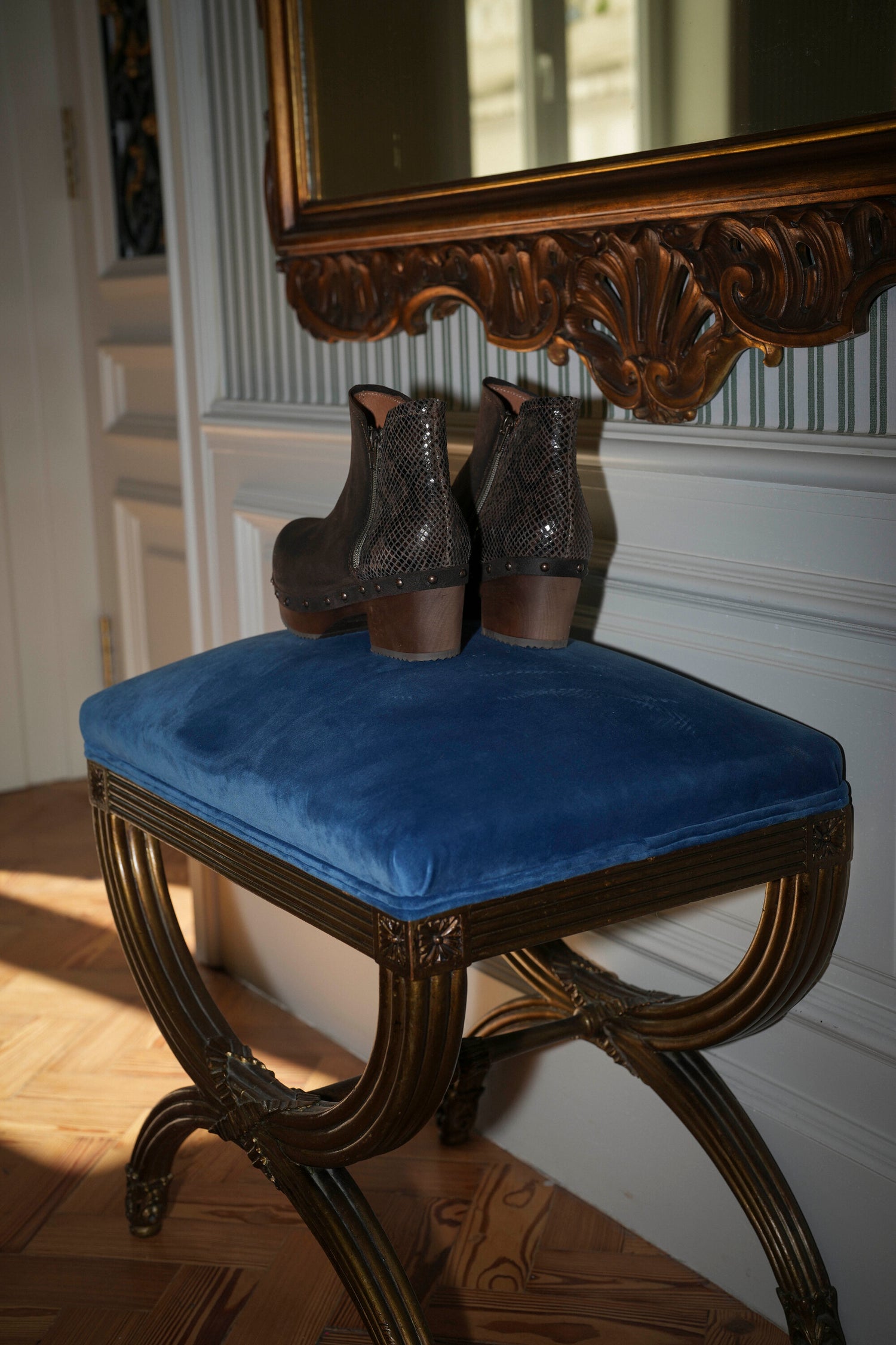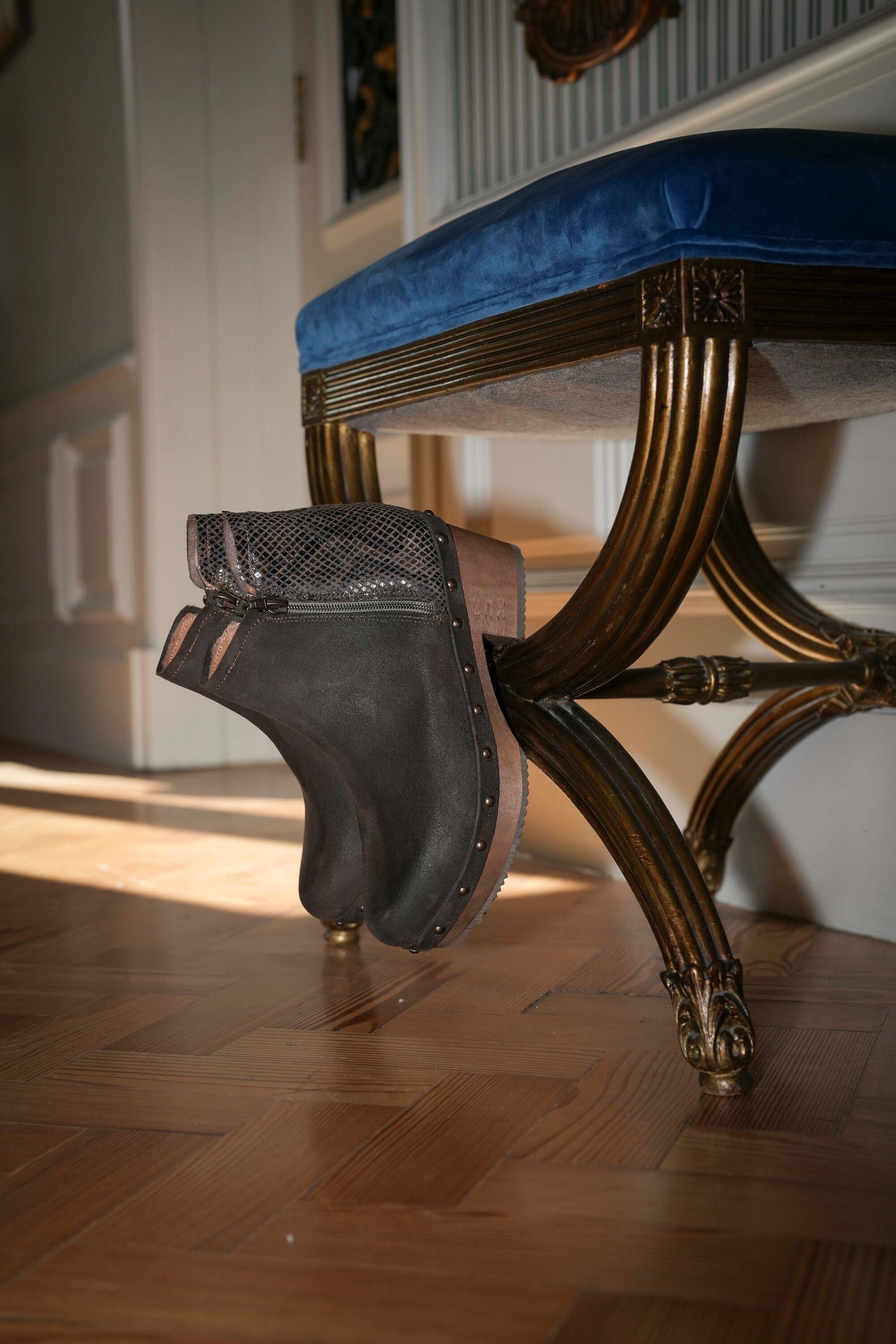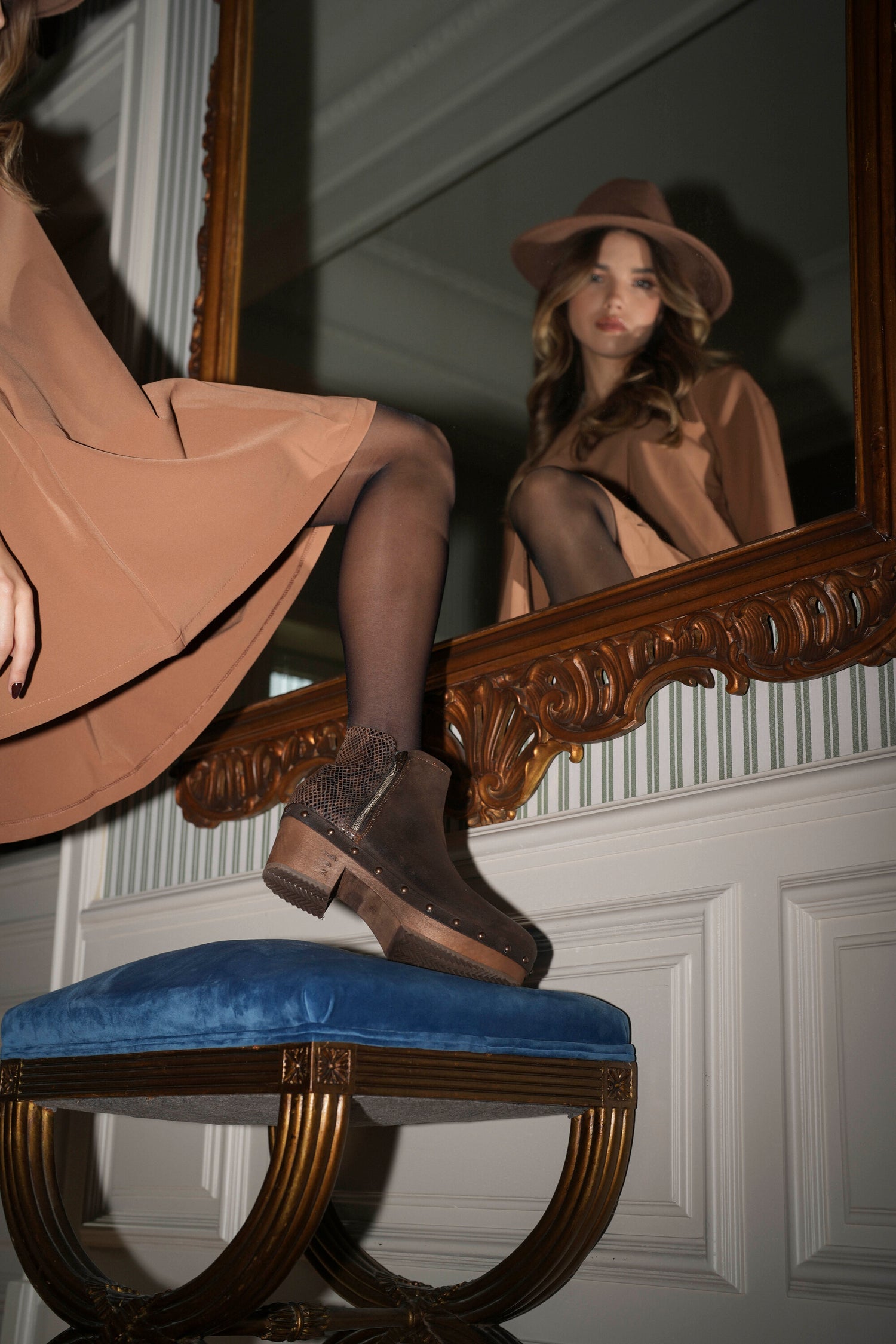 É um produto manufacturado pelo que variações que possam existir na cor da pele, nos tacões de madeira são inerentes ao processo manual o que torna esta peça única.