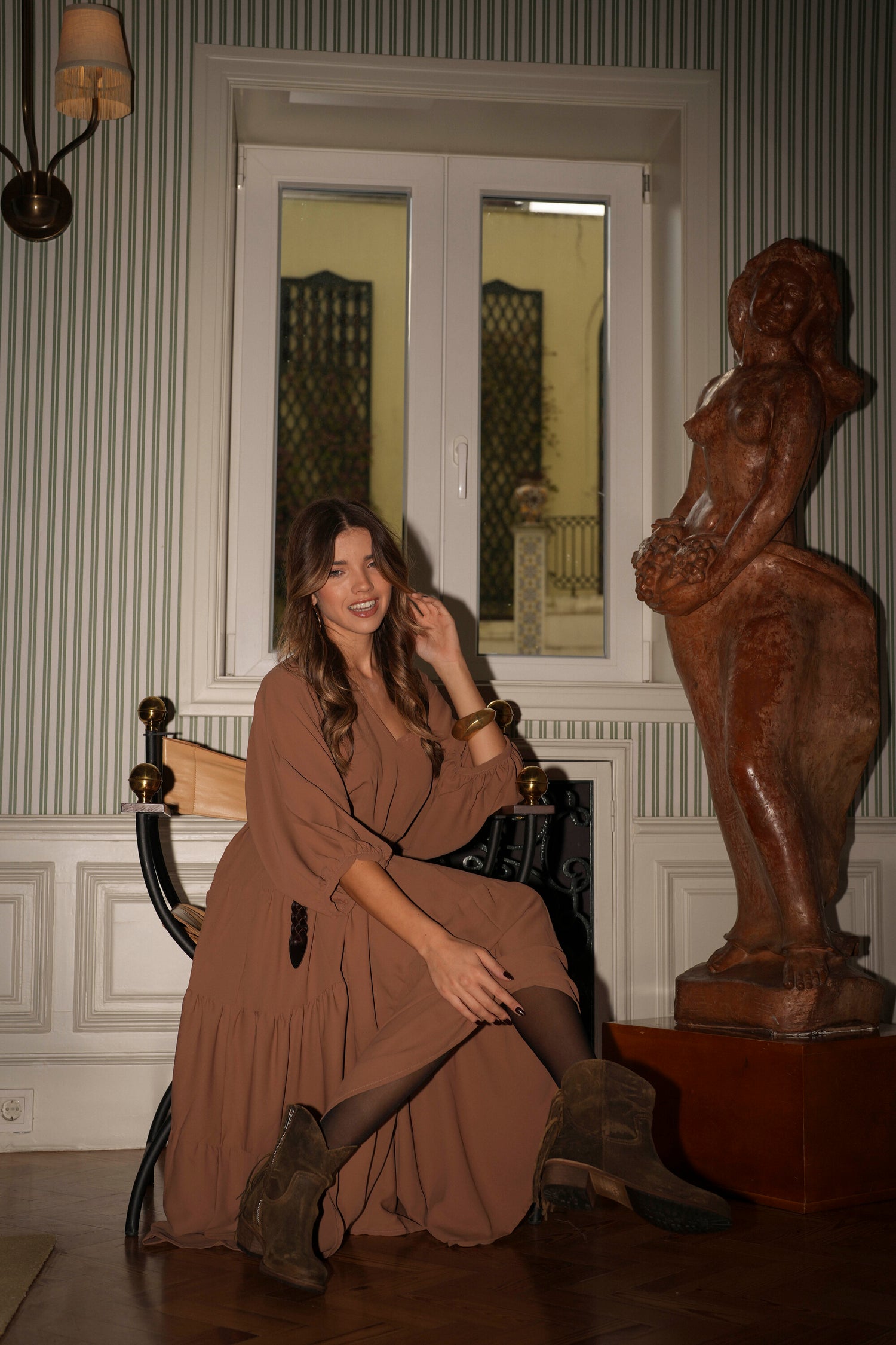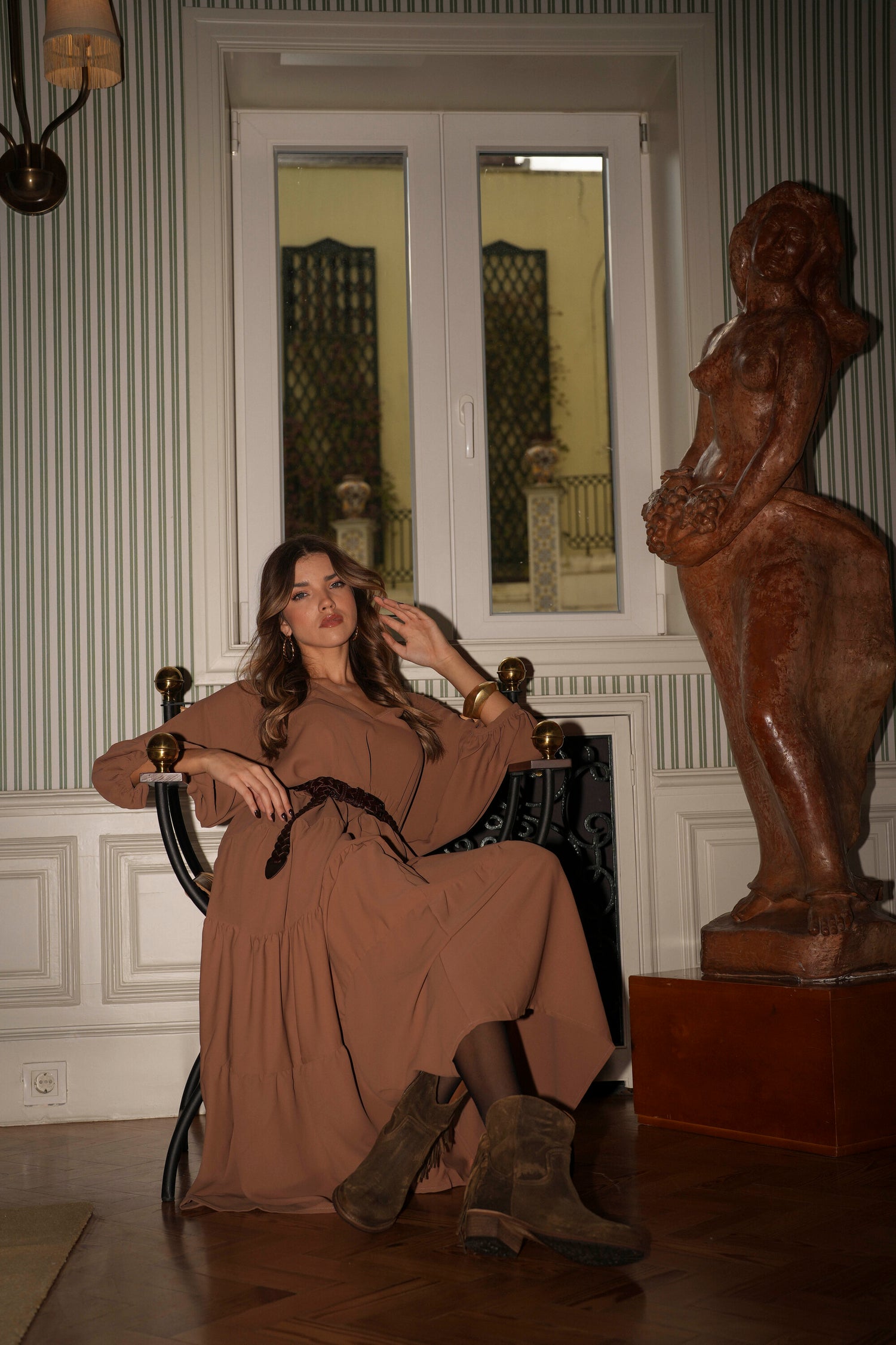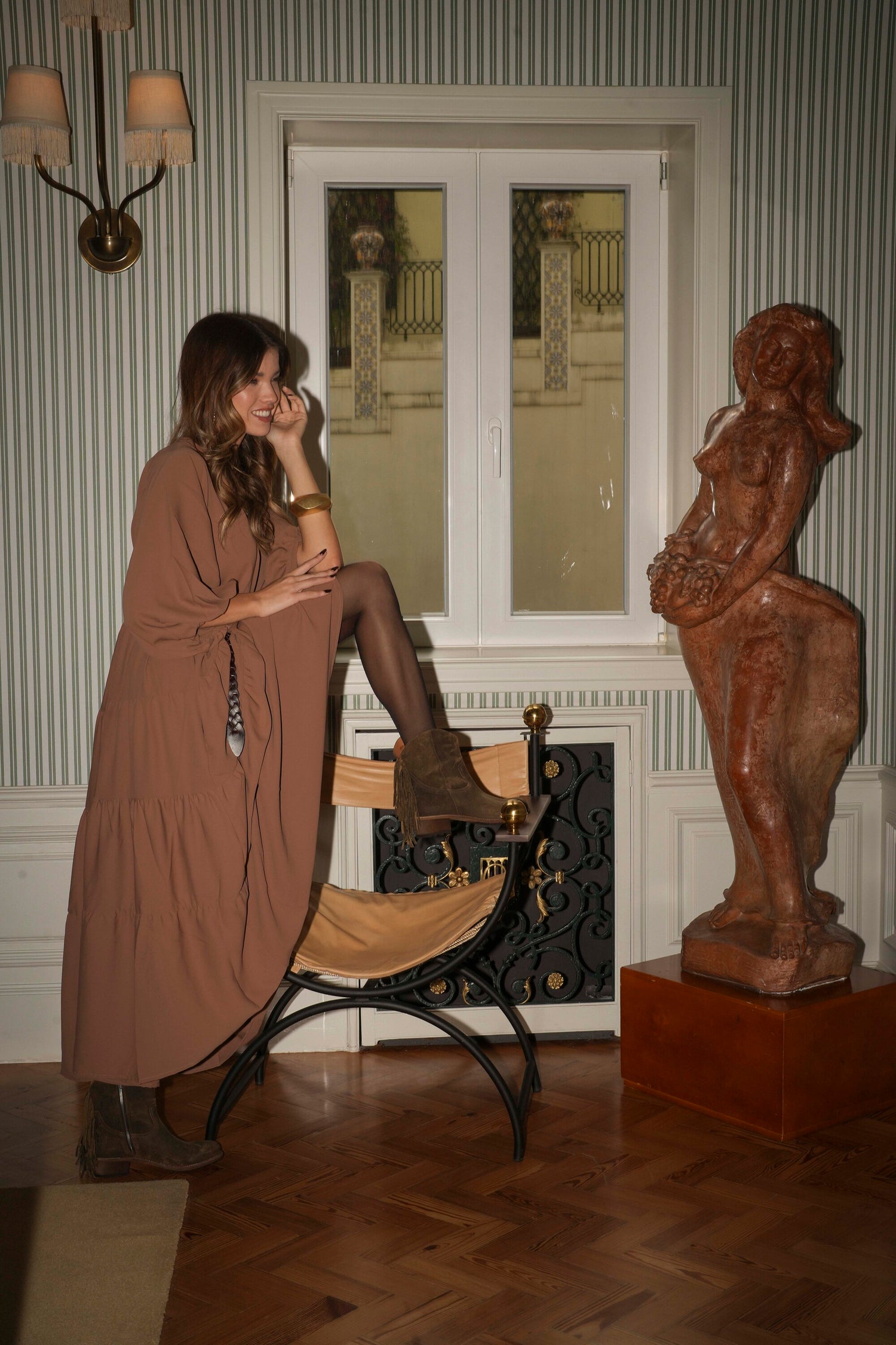 Botas em pele castanho com franjas